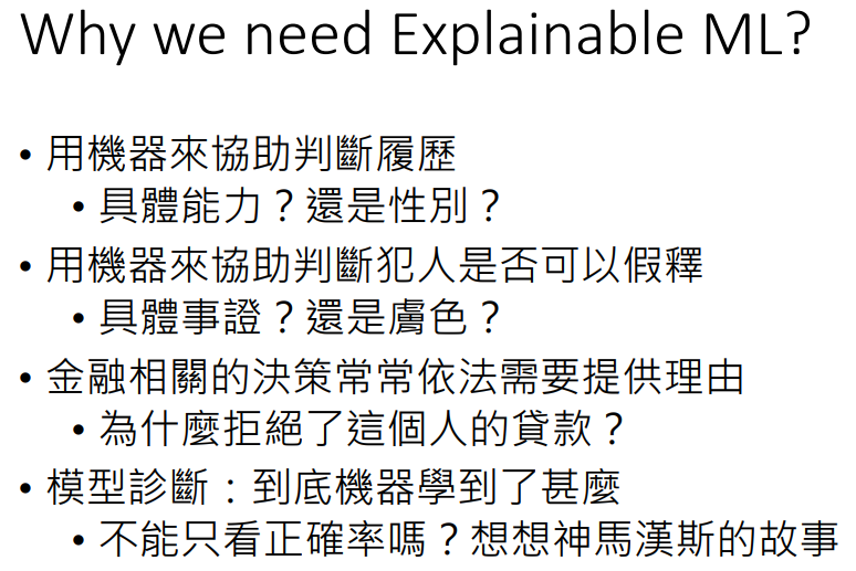 EXPLAINABLE MACHINE LEARNING :让机器在判断input的同时,需要知道为什么这样判断。