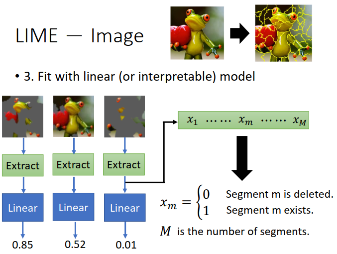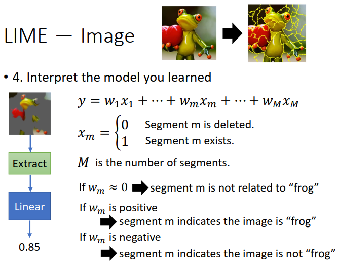 当然这样存在一个弊端,一个nerual network 并不是一个linear model 能解释得。但是呢?如果只是解释部分位置,也就够用了,具体看下面的LIME。