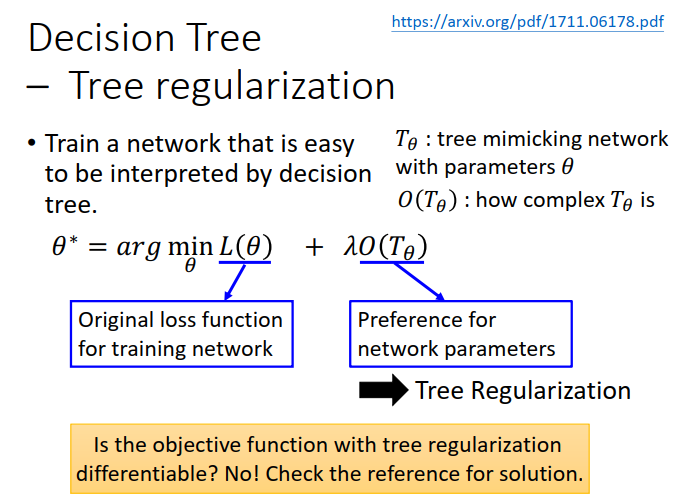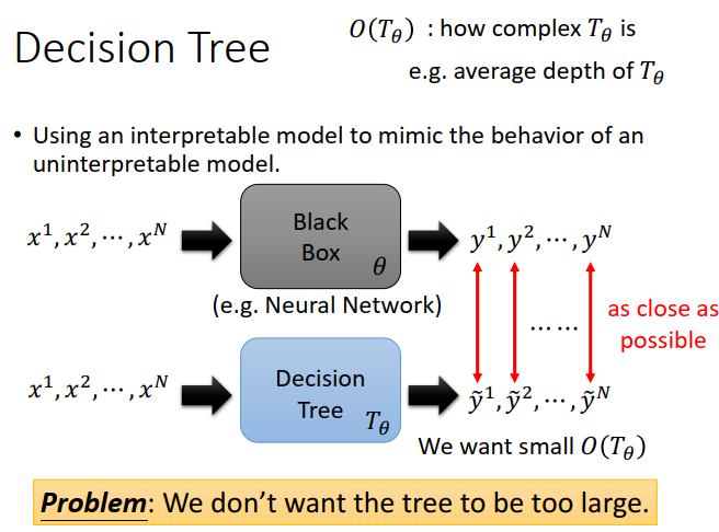 上面的例子呢,我们是用linear model 来解释一个 neural network,我们还可以用其他的东西来解释。比如Decision Tree 。