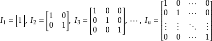 既然我们要用到快速幂,众所周知我们要先定义一个初始值为1的接收答案的变量,那么我们怎么去找这样一个“1”去接收矩阵的乘积呢?答案就是—符合乘法条件的单位矩阵。什么是单位矩阵?