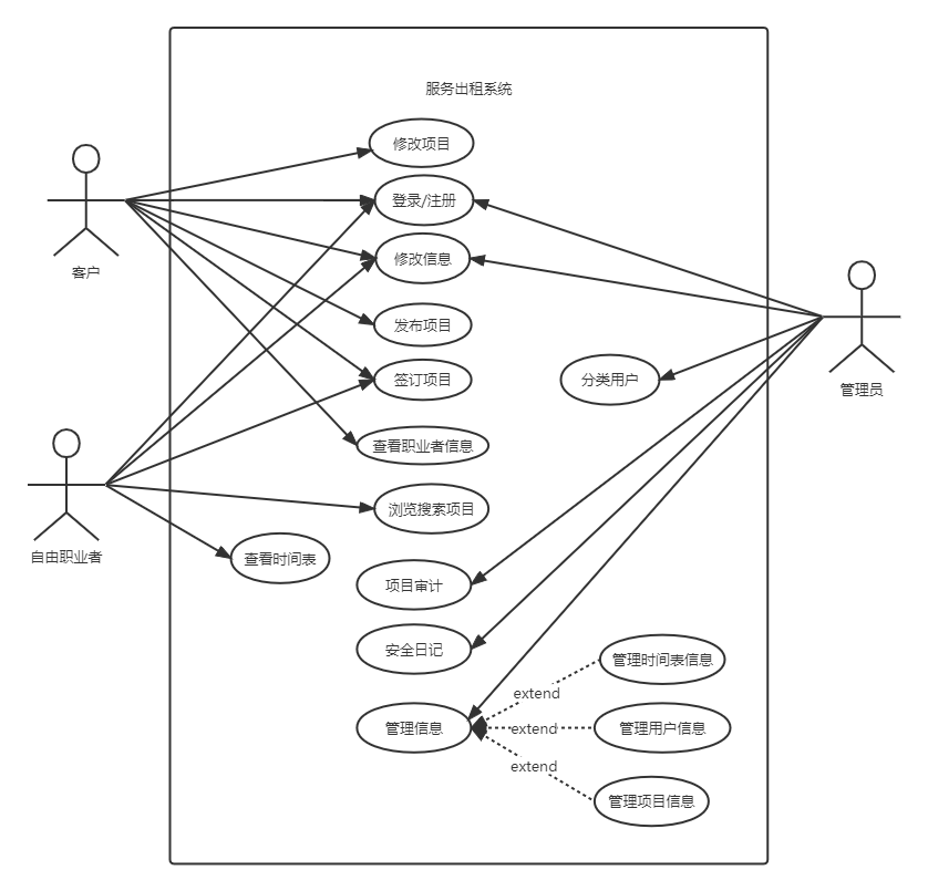 1.用户管理功能(登录注册、自由职业者和客户的管理)