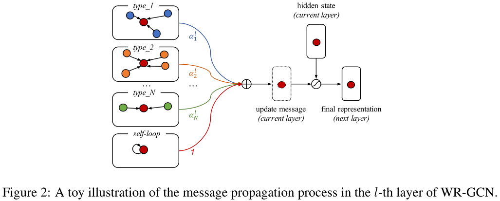 Similar to SML, WR-GCN is also employed to propagate messages among nodes: