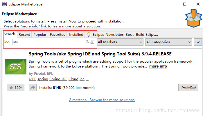 2:如果你的ecplice没有STS插件,参考按照(已经安装了STS插件的小伙伴跳过此步骤)