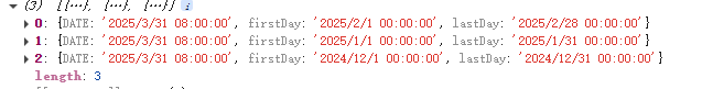 例如:2025-03-31往前推1月是2月,2月只有2.28,没有31号,31-28 = 3,往后推3天就是3.3,设置日期之后,就是3.3号每次往前推一月,得到2025.2.3,2025.1.3