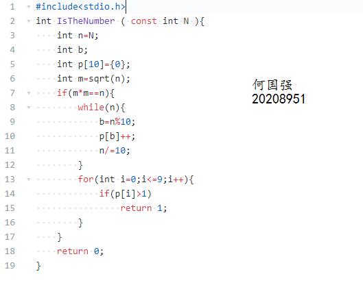题目内容描述:本题要求实现一个函数,判断任一给定整数N是否满足条件:它是完全平方数,又至少有两位数字相同,如144、676等。int IsTheNumber ( const int N );其中N是用户传入的参数。如果N满足条件,则该函数必须返回1,否则返回0。