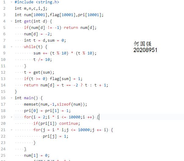 数据表达:定义m,n,c,i,j;num[10001],flag[10001],pri[10001];为整型