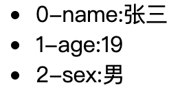 <li v-for="(item,index) in users">{{index+1}}、姓名:{{item.name}}年龄:{{item.age}}</li>