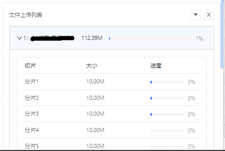 分片-初始化任务的时候,将分片数组及文件md5传给后端,后端返回该文件上传的任务id,及没有上传的片段数组及小片段id,已经上传的片段,实现秒传效果,这里就是断点续传的主要逻辑思路