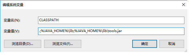 (2)继续在系统变量里面新建一个CLASSPATH变量,其变量值如下图所示: