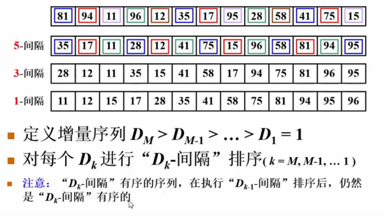 同理,再依次以3为间隔、以1为间隔进行交换(要注意的是:间隔数是要依次减小的,增大间隔数起不到排序的效果)