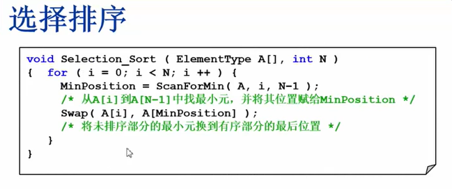 一开始,在所有数字中取出一个最小元(因为一开始整个序列都是未排序的),然后将这个最小元放到最左边,作为已排序部分