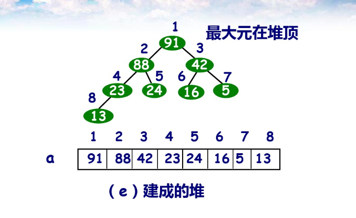1、将待排序的数组随意地组成一个堆形(例如:一开始有一个一维数组,就可以直接依次按数组下标递增的顺序,构建一个完全二叉树)