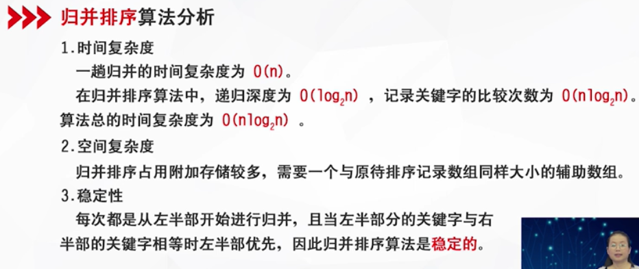 优点:归并排序的最大好处是在数据呈现最坏情况时,是所有排序算法中表现最好的。(?)