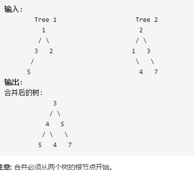 Node* merge(Node* root1,Node* root2){ if(root1==NULL) return root2; if(root2==NULL) return root1; //重新定义一个新的结点 Node* root=new Node(0); root->data= root1->data + root2->data; root->left=merge(root1->left,root2->left); root->right=merge(root1->right,root2->right); return root; }