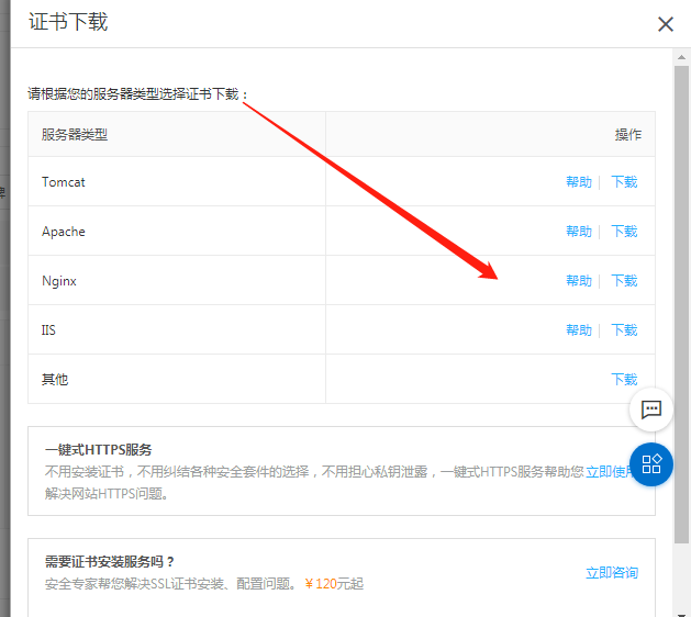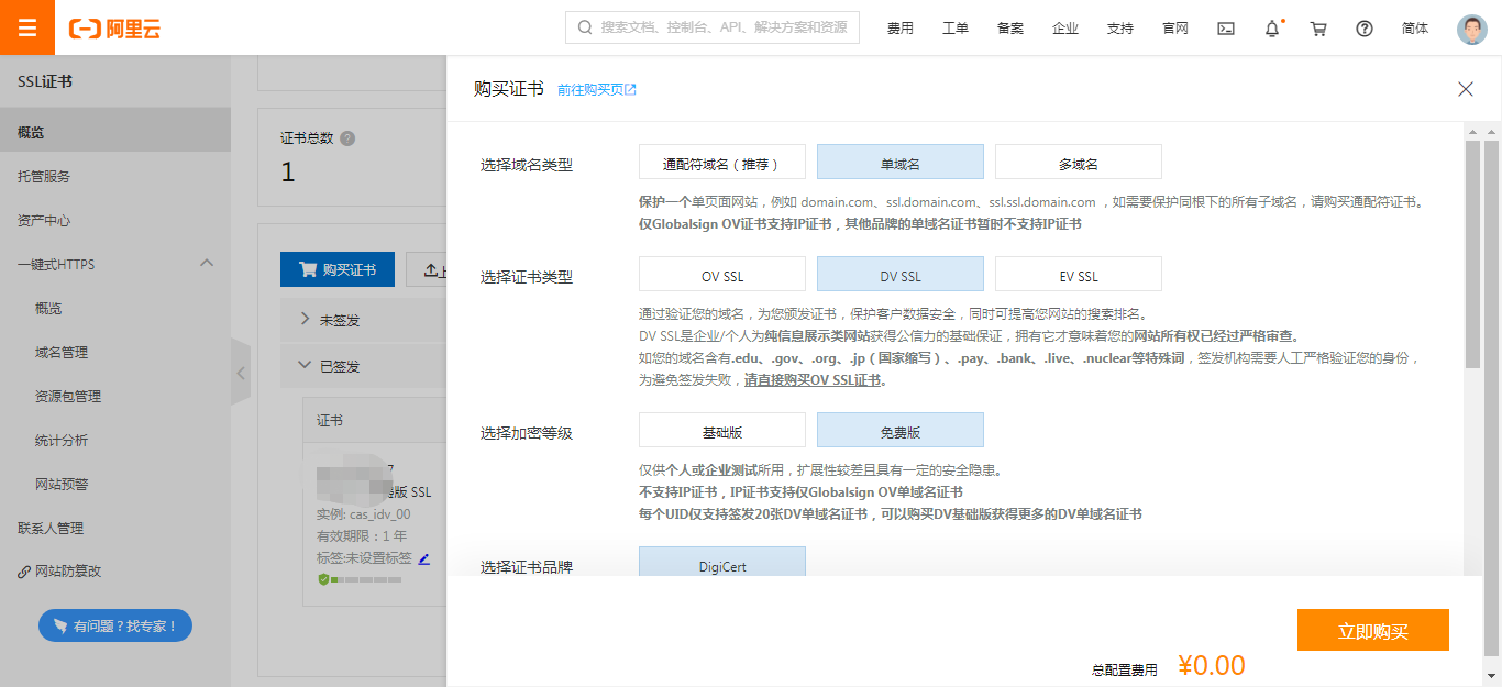 域名界面点进管理,购买免费证书并下载,这里用的是Nginx