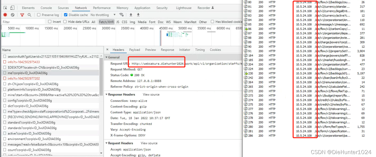 保存一下代码,重启软件就可以达到以下效果,请求域名的接口全部被替换成了跳板机上的接口