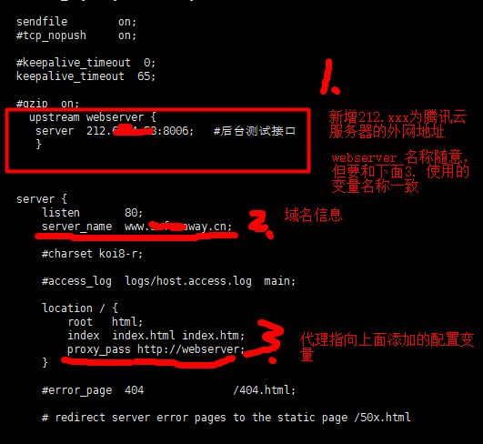 2.在nginx的conf/nginx.conf中配置参数: