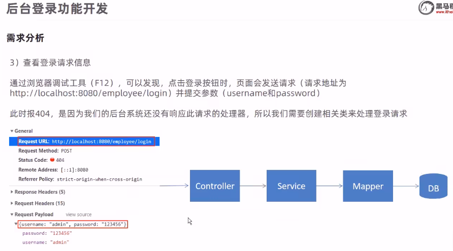2.前端页面发送请求映射到后端数据库,流程:前端界面发送请求→控制层(controller)→服务层(service)→映射层(mapper)→数据库