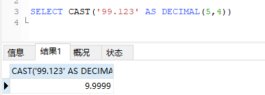 如上图,总位数是5位,小数位要求4位,但是99.123只有三位,总位数要求5位,所以就造成了精度缺失,具体内部是怎么造成,目前还不是很清楚。结果就成了9.9999.