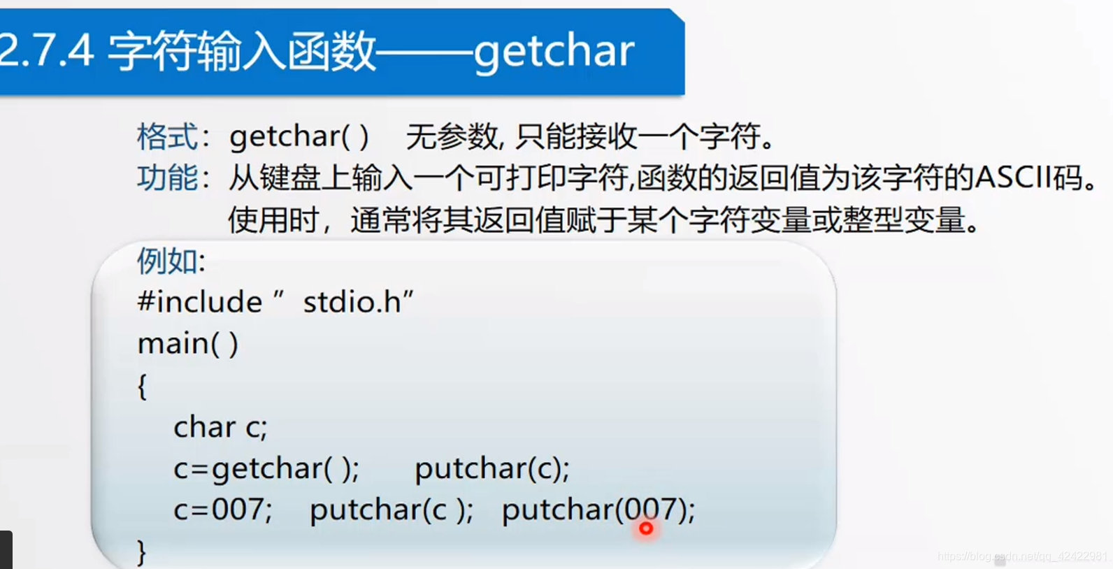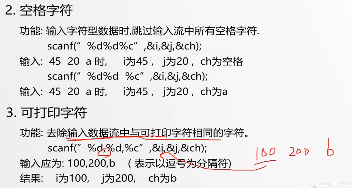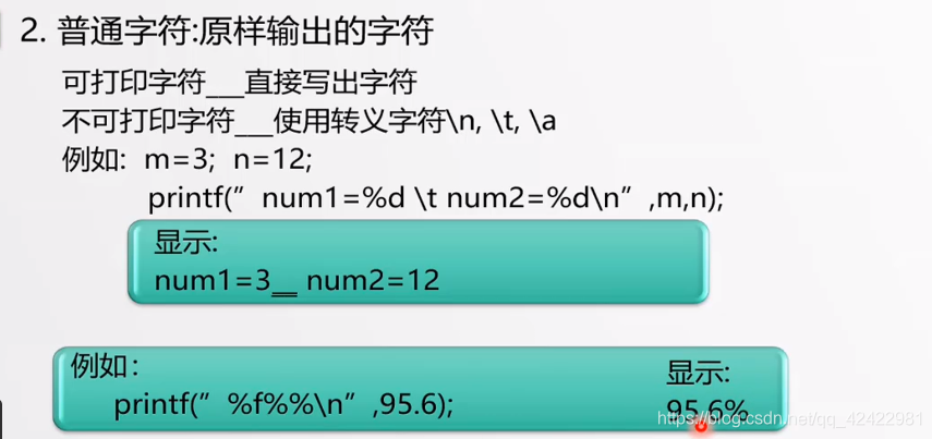 1 #include <stdio.h> //给printf用 2 #include <stdlib.h> //给system用 3 4 #define PI 3.1415926 /*宏定义是预处理命令,不是语句,因此结尾不用分号。 5 宏定义一般用在一个常量反复出现在程序中时,宏定义好处: 6 1、方便修改维护,如果需要修改此常量,仅需修改宏即可。 7 2、增加程序的可读性 8 注意:它仅仅就是替换,不做任何计算等。 9 10 const常量有类似功能,但是const常量有数据类型。 11 */ 12 int main1() 13 { 14 char a = 'A', b = 'D',c;/*单引号引起的代表此字符的Asiic码对应数值, 15 A = 65,D= 68, ? = 133 */ 16 c = a + b; 17 printf("%c\n",c); //%c代表单个字符 18 system("pause"); 19 return 0; 20 21 } 22 int main2() 23 { 24 char a = 'A', b = 'D', c;/*单引号引的代表此字符的Asiic码对应数值, 25 A = 65,D= 68, ? = 133 */ 26 c = a + b; 27 printf("%c\n", c); //%c代表单个字符 28 system("pause"); 29 return 0; 30 31 } 32 /* 33 c语言中的数据类型 关键字 长度 位数 范围 34 字符型: char 1Byte = 8bit -128—127 35 整数: int 4Byte = 32bit -2^31—2^31-1 36 浮点型 float 4Byte = 32bit _+(10^-38—10^38) 显然一般的数用float单精度足够 37 双精度 double 8Byte = 64bit _+(10^-380—10^380) 99.9999%的可能你不需要用它! 38 39 unsigned 指的是将第一位的符号位也视为数值位,即没有负数区间,但正数区间增大一倍。 40 signed就很显然了,第一位符号位,区间上限比unsigned变小一半。 41 */ 42 /* 43 为什么1Byte = 8位? 44 这个要从美国人的所有符号说起,ASIIC码中,英文中所有符号、数字加起来不超过128,也就是7位,加上符号位8位就够了。因此用了8位。 45 但是汉字8万多,显然不行,因此有了其他编码如utf-8 46 47 网速说的10M是通信中的概念,单位实际是Mbit/s 48 因此10Mbit/s = 10/8 MByte/s = 12.5M/s 49 */ 50 51 /* 52 53 数据类型:十进制 八进制(0开头) 十六进制(0x开头) 54 65 0 101 0x 41 55 56 3255U (无符号类型 十进制) 57 0x41U (无符号类型 十六进制) 58 3.12e-2 用 e 表示 10^ 59 60 字符常量:指用一个单引号引起来的一个字符。字符常量本质上就是十进制数。 61 字符串常量:。。。。。。双引号。。。。。 62 存储字符串时,系统会识别引号结束符,然后自动给其结尾加上 NUll串结束标识符 63 如"china"实际存储时是用6个字节; c h i n a NULL 64 对应Asiic码中的存储形式为: 67 104 105 112 97 \0 65 66 转义符:双引号 反斜杠已经有具体意义了,双引号代表字符的开始和结束。 67 要打单引号:\' 68 要打双引号:\" 69 要打反斜杠:\\ 70 71 72 因为存储的最小单位是字节,因此画的存储分配内存示意图中最小的矩形框代表1个字节 73 变量的实质是一块内存空间 74 如x = 25 75 y = x-- ;后置运算符减号表示,先赋值给y,再把x减少1。 y = 25 76 y = --x ;前置运算符减号表示,先把x减少1,再赋值给y。 y = 24 77 78 类型强制转换: eg: int x = 10; 79 float y; 80 y = x ;(会警告!) 81 82 改动: y = (float)x; 安全! 83 84 */