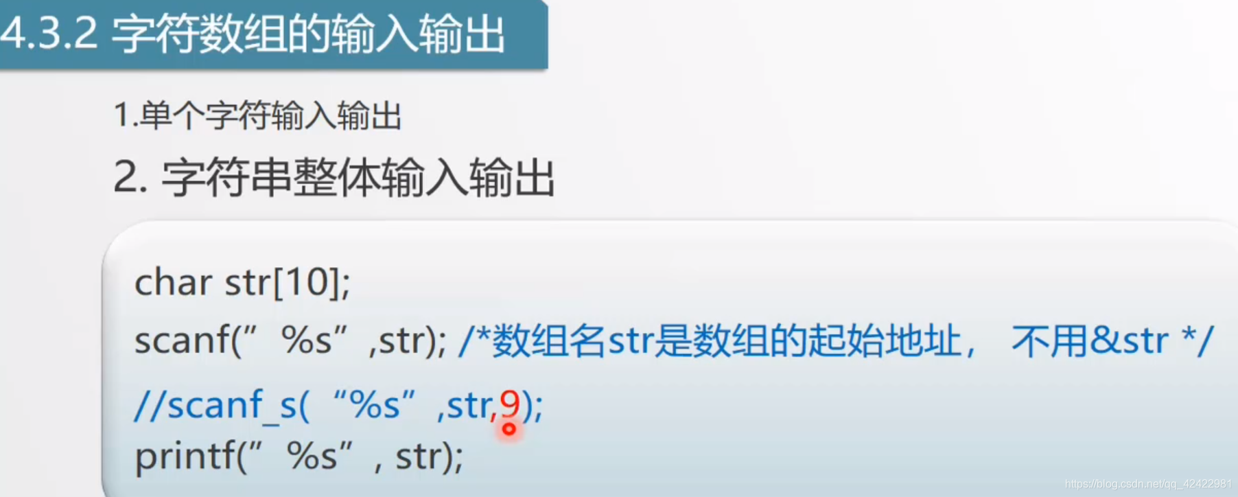 注:因为系统会自动追加字符结束符\0 一同存储,因此VS中的安全函数scanf_s最大写入为9.