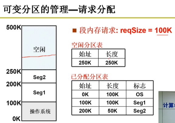 所以,一般采用可变分区,其核心结构是表,记录空闲的内存与已经分配的内存。