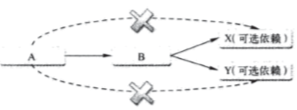 假设有这样一种依赖关系:A依赖B,B依赖X或者Y。由于X和Y是可选的,因此依赖将不会得以传递,也就是说X、Y将不会对A有任何影响。