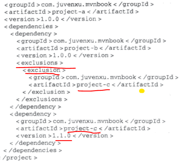 比如项目a依赖项目b,但是由于一些原因,不想引入传递性依赖c,而是自己显示地声明对于项目C 1.1.0的依赖。采用了exclusion元素来排除。