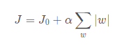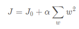 (J0为原来的损失函数,惩罚项是w2求和,这里的w指的就是原来的各项指标(系数),α是正则化参数)