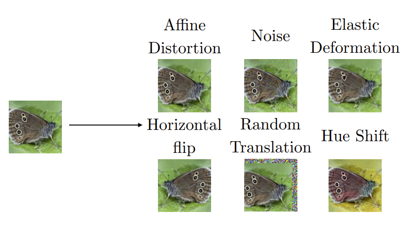 仿射变换、噪声、弹性变换、水平翻转、随机平移、色调变换......