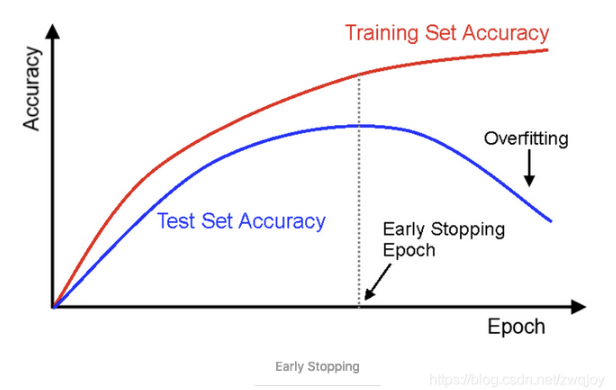 原理:每个epoch结束后(或每N个epoch后): 在验证集上获取测试结果,随着epoch的增加,如果在验证集上发现测试误差上升,则停止训练。