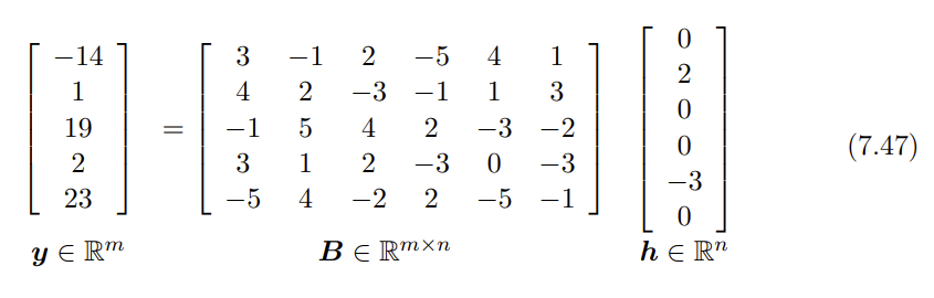 如上图,此向量(信号)可以用一个过完备字典矩阵和一个稀疏向量相乘来表示。