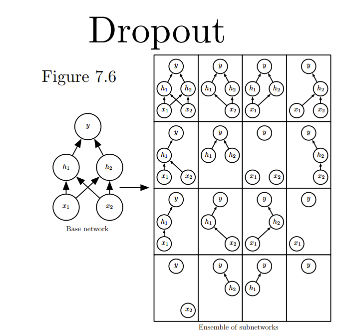 - 对一小批训练样本,先前向传播然后反向传播损失并根据随机梯度下降法更新参数(w,b) (没有被删除的那一部分参数得到更新,删除的神经元参数保持被删除前的结果)。