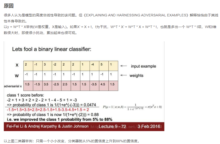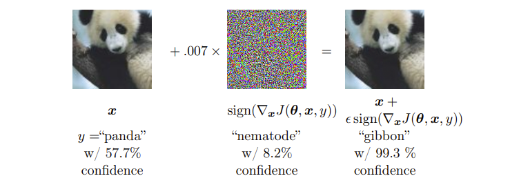 通过故意添加细微的干扰所形成的输入样本(对抗样本),模型以高置信度给出了一个错误的输出。这也是泛化能力弱的一种体现。