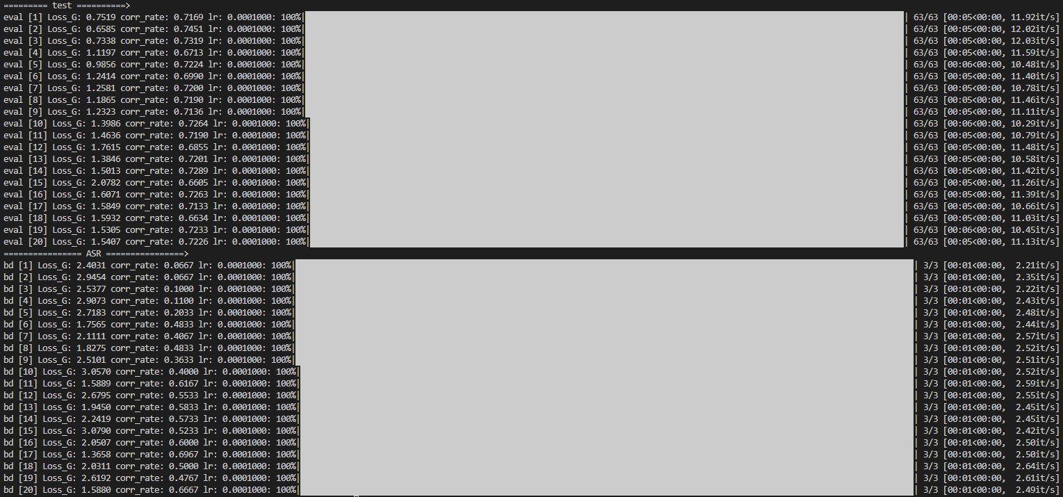 1. 如果使用原来的classifier_resnet18.py,使用的train_set,即污染的数据集是全部被污染还是部分被污染?如果是部分污染,是不是原来的classifier_resnet18.py就可以直接跑train_set获得结果?然后就是关于classifier_resnet18.py的输出,里面ASR的corr_rate是不是越低代表攻击成功率越高?——已解答,污染的数据集是只前7类加上trigger之后放到第8类中。也就是说前7类是正常的干净数据集,第8类是正常的第8类干净数据集加上污染的前7类数据集。所以test和ASR的corr_rate分别代表正常数据的预测准确率和攻击成功率,两者都是越高越好。