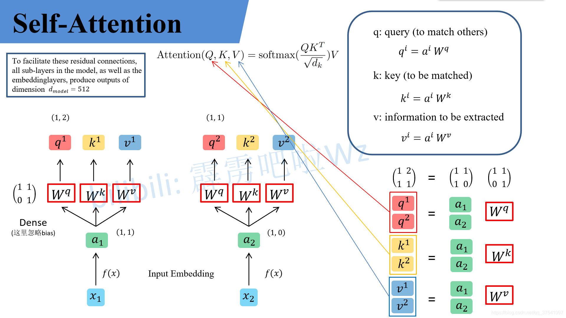 这三张图非常清楚地写出了Self-Attention层的具体情况: