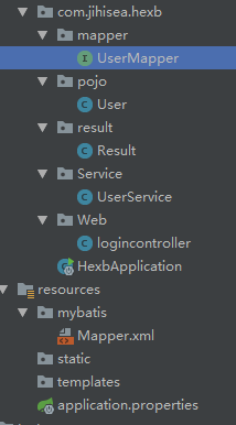 首先这个是项目目录,其中有一个result/Result是用于定义响应码code来负责前后端分离用的,这里先不做讨论