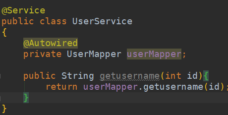 注入的是userMapper时也可以使用userMapper.getusername(2)来调用 ,感觉UserService就是进行了一遍二次包装。