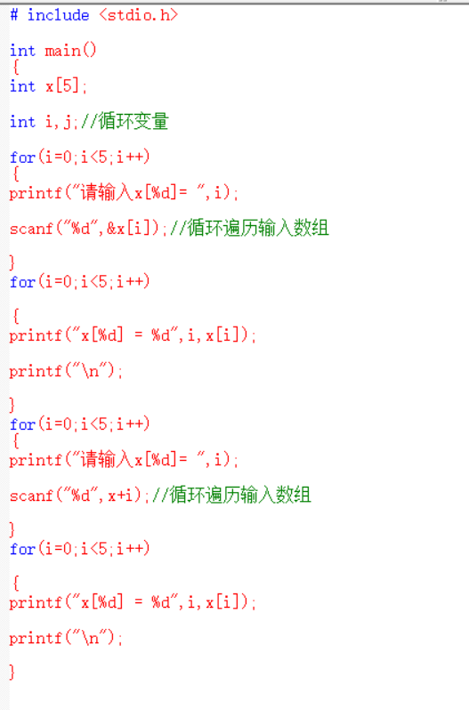 此数组有5个元素,分别为x[0],x[1],x[2],x[3],x[4]。每一个元素均为整型变量,所以只要在这些变量前加&,即表示该变量在内存的地址。