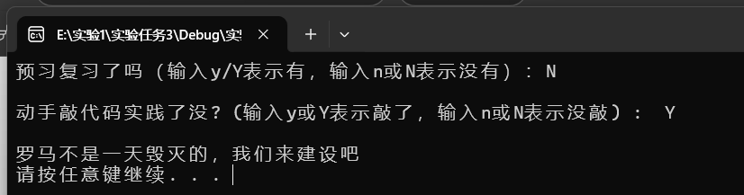 printf("预习复习了吗(输入y/Y表示有,输入n或N表示没有):");