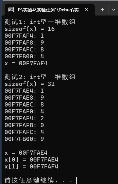 // 输出二维数组名x, 以及,x[0], x[1]的值