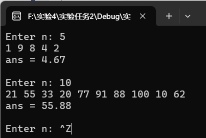 printf("ans = %.2f\n\n", ans);