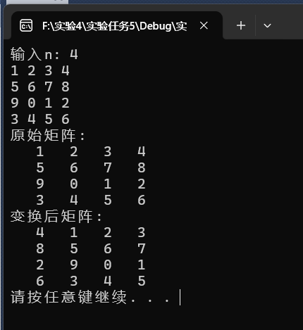 printf("变换后矩阵:\n");