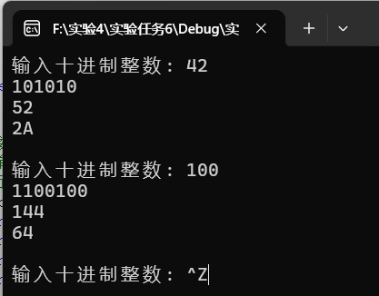 while(printf("输入十进制整数: "), scanf("%d", &x) != EOF) {