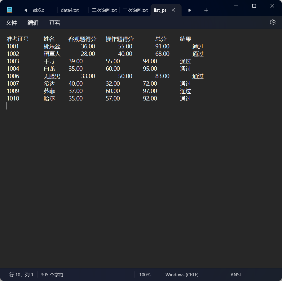 // 把通过考试的考生完整信息写入文件list_pass.txt
