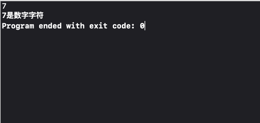 #include <stdio.h> int main() { char c; scanf("%c",&c); if(c>47&&c<58) printf("%c是数字字符\n",c); else if(c>64&&c<91||c>96&&c<123) printf("%c是英文字母\n",c); else printf("%c是其他字符\n",c); return 0; }
