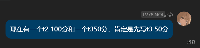 好在 17:15 终于调出来了,一看过了大样例,跑的还挺快,心脏嘣嘣跳,直接回去看 t2,我去,我不会真能 300+ 吧。