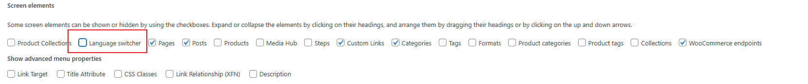 使用polylang,后台管理的外观->菜单中找不到语言切换器,查了很多网页,大部分说是polylang安装有问题,但是我已经能在后台配置polylang,所以,我认为这个解决方法不适合这个问题,于是我就想,是不是要手动添加,然后在网页上找添加按钮,功夫不负有心人,终于让我找到了。