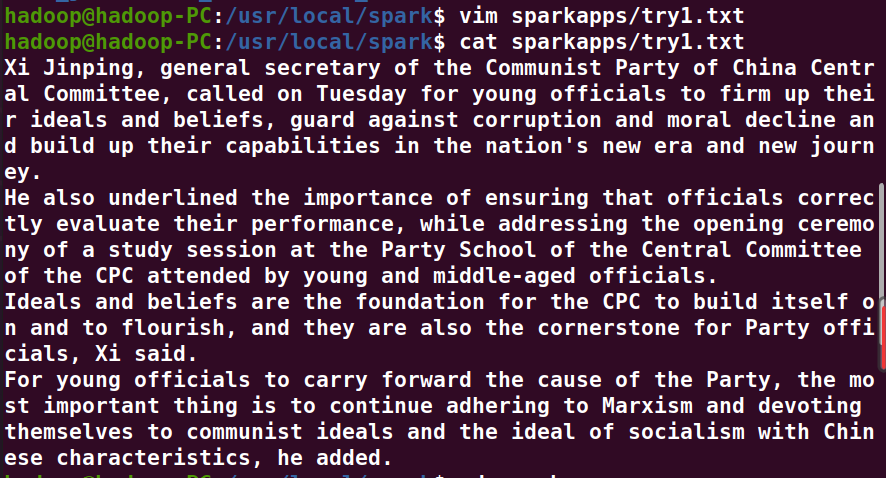 path='/usr/local/spark/sparkapps/try1.txt' with open(path) as f: text=f.read()