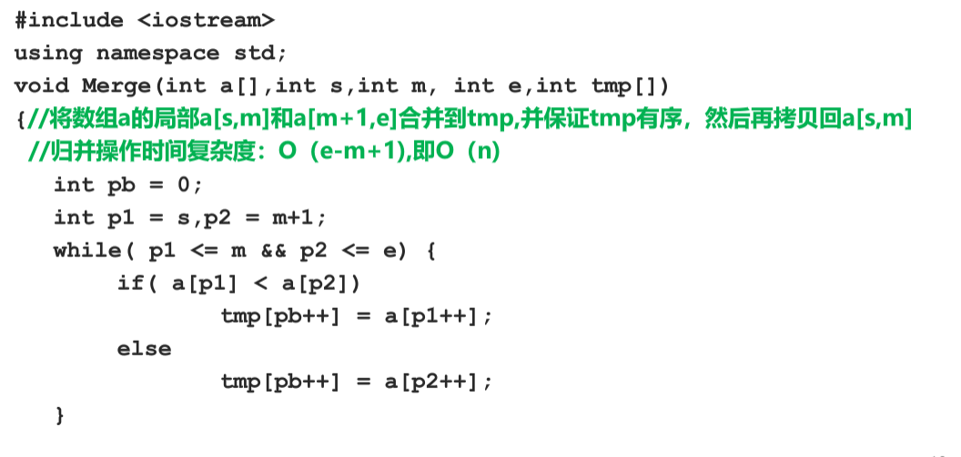 第三步:合并,合并两个排序好的子序列,生成排序结果